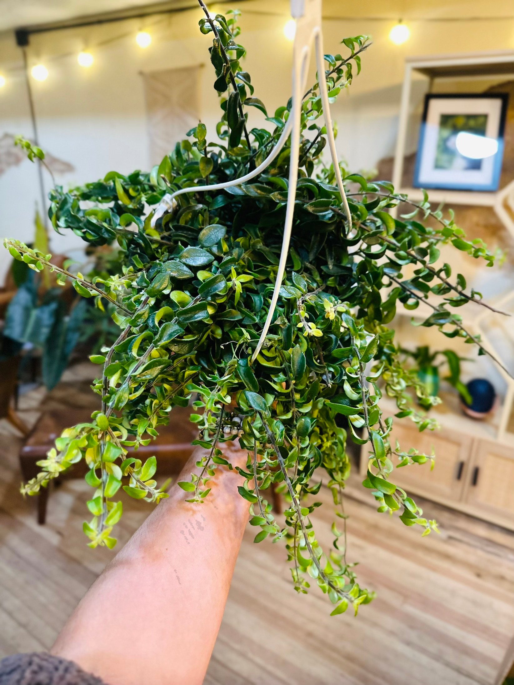 Lipstick Curly Rasta is a bold, trailing tropical plant loved for its thick, twisted, rope-like stems that cascade dramatically over the edge of pots and hanging baskets. The deep green foliage has a naturally curled, sculptural form, and under the right conditions it produces vibrant red, tube-shaped “lipstick” flowers that add a pop of color. Its wild texture makes it a standout in any plant collection.