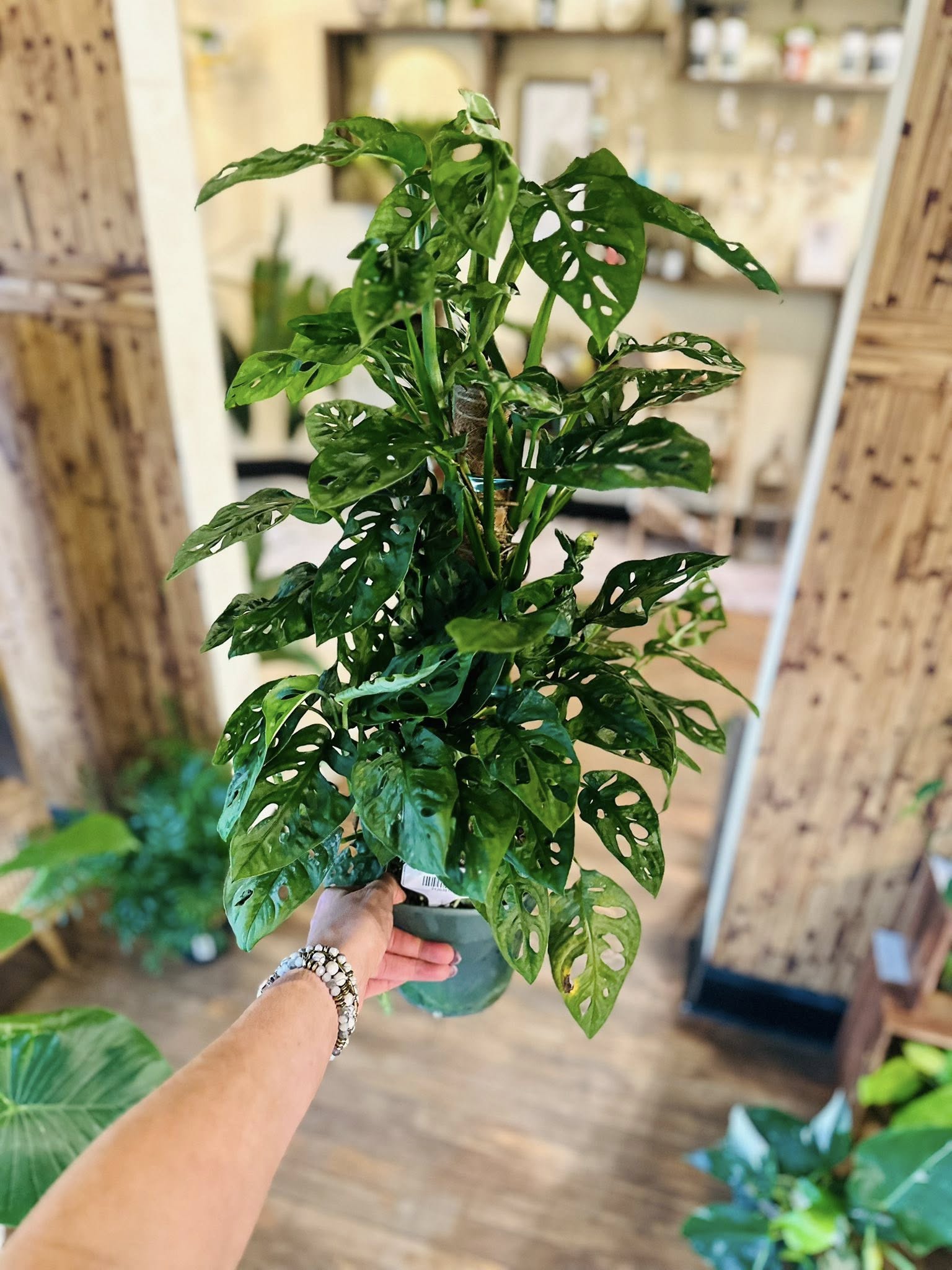Known for its dramatic, hole-filled foliage, Monstera adansonii adds instant jungle vibes with a wild, trailing growth habit. It’s a fast grower that climbs or cascades beautifully, making it perfect for hanging baskets or climbing poles. A fun and bold plant for any space that needs a little texture and movement.