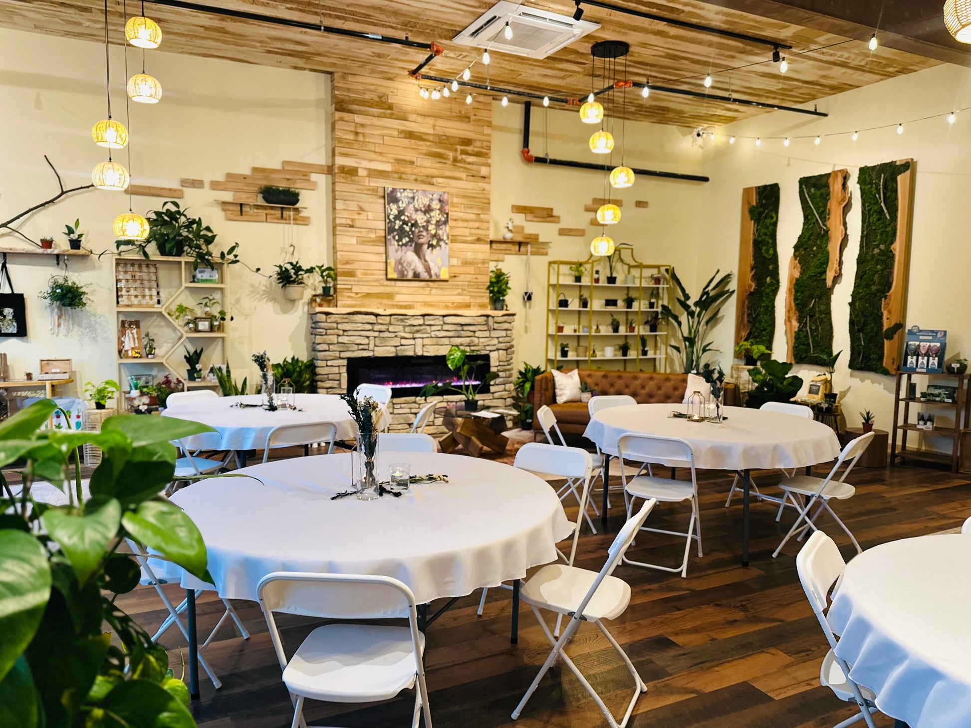 ✨ $10 Plant Bar Add-On – guests head to the Potting Table to create their own mini arrangement at our Plant Bar!