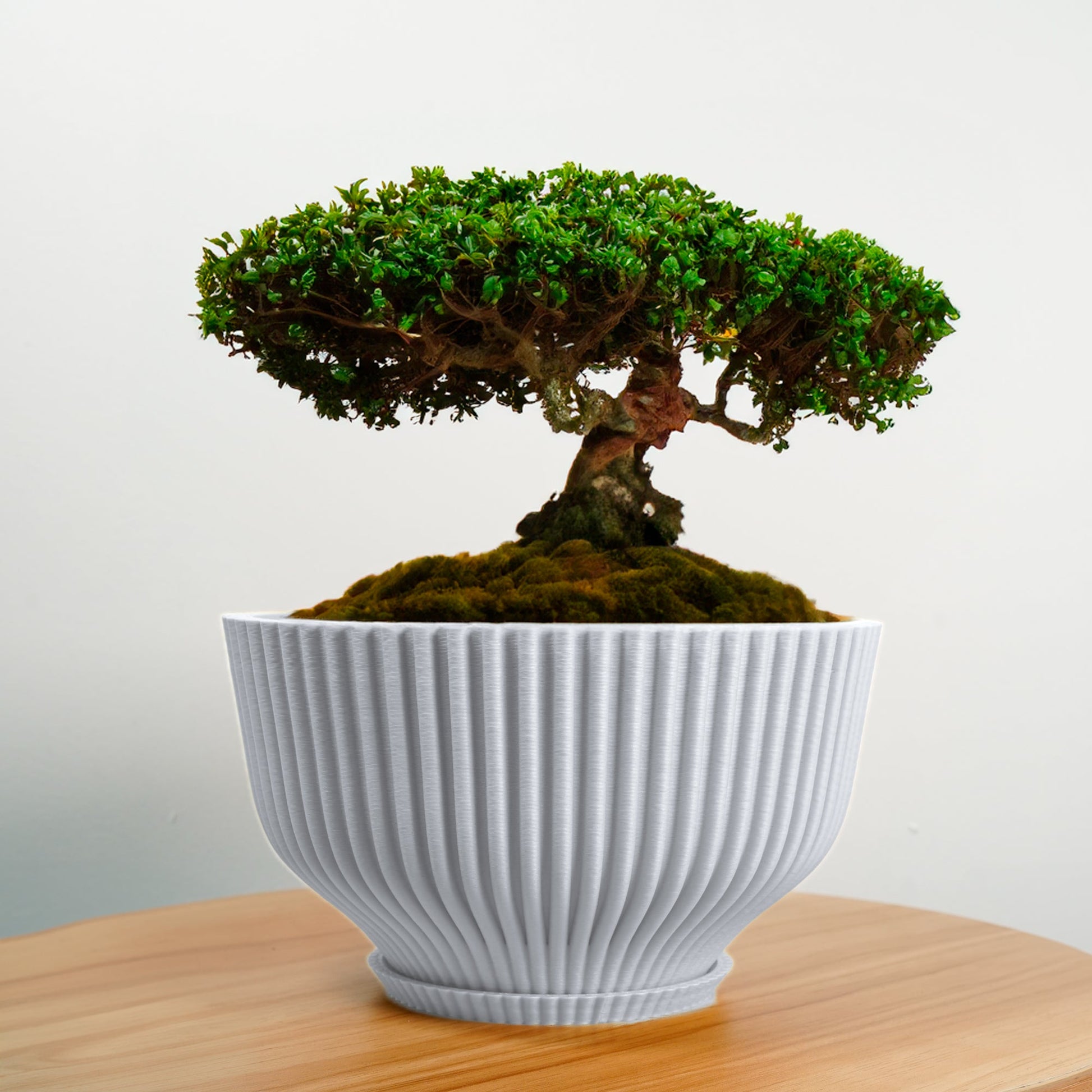 Mid-century modern Bonsai pot designed 3d printed planter made with high quality, eco-friendly plant based materials. Great for indoor houseplants. Take the stress out of the day with unique plant pots that not only look great, but are good for your plants too! These planters are recyclable and bio-degradable although they will last for years.