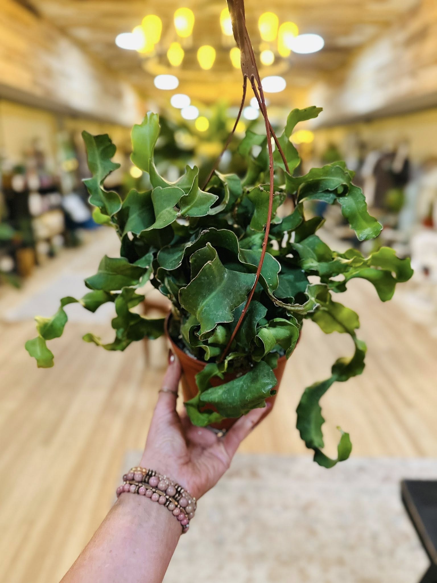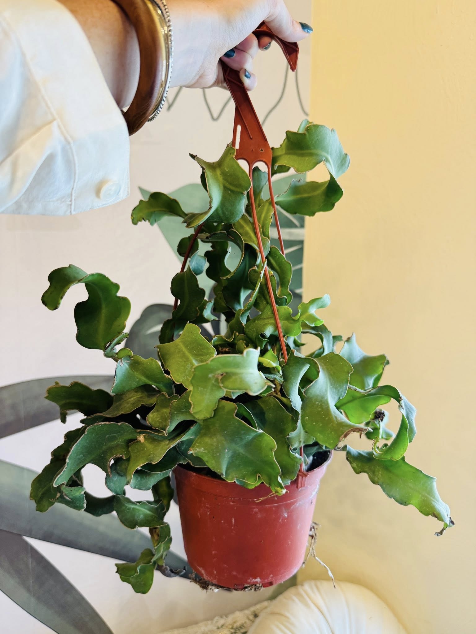 ‘Curly Sue’ is a showstopper! With wild, twisting, ribbon-like stems that spill over the edges of pots and baskets, this epiphytic cactus adds a bold sculptural vibe to any space. It’s low-maintenance, fast-growing, and thrives even in indirect light—perfect for hanging in a bright room or on a covered porch.
