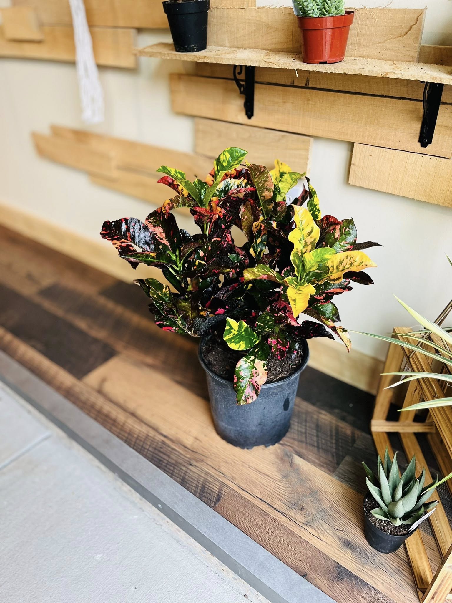 Fun Fact: Crotons like the Magnificent naturally change color over time—new leaves often emerge green or yellow, then deepen into fiery reds and purples as they mature, giving the plant a constantly shifting look. 🌈