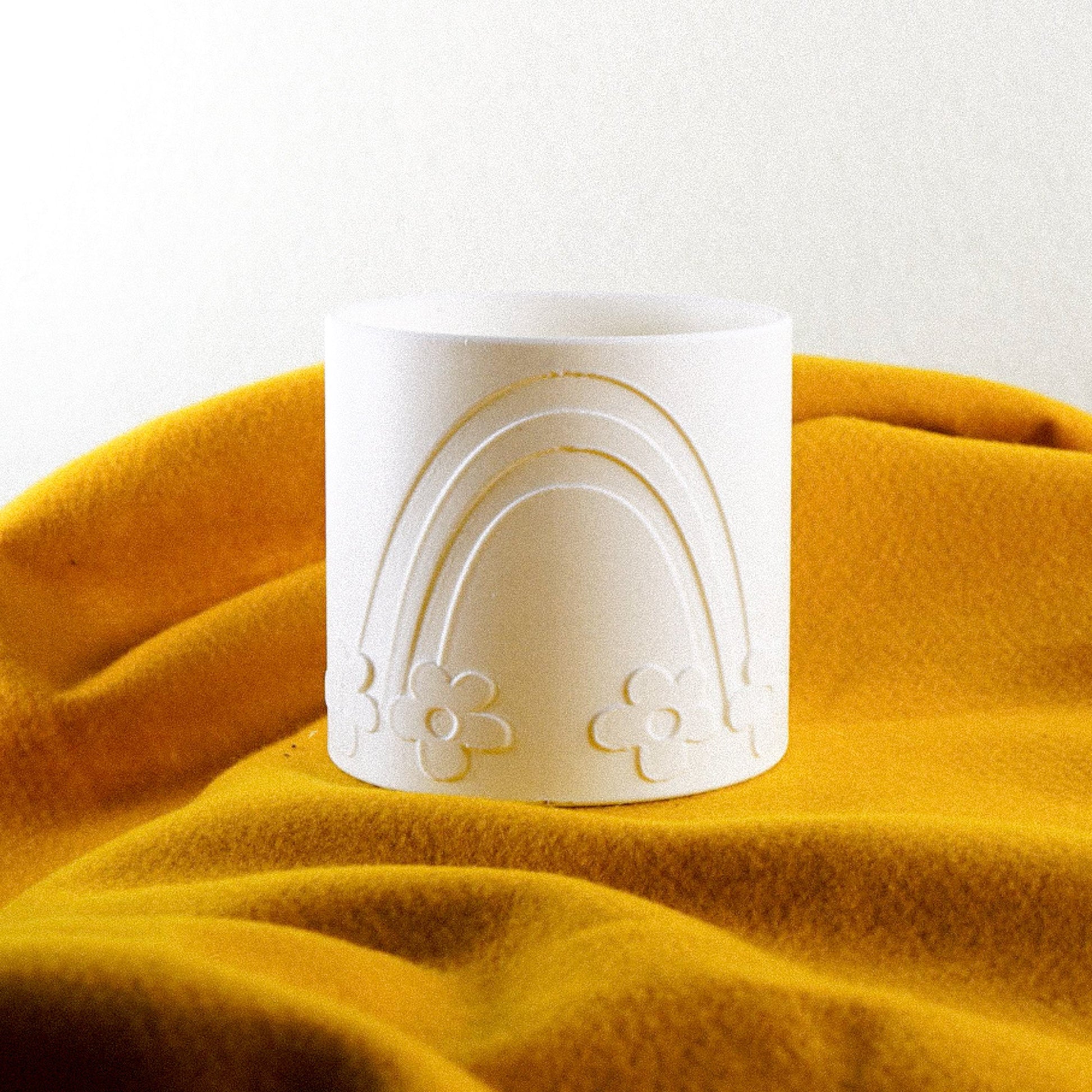 The Daisy Rainbow planter is a great indoor planter for any houseplant. The design texture is 360 degrees of the pot and has an amazing feel. Designed to hold any 4 inch or 6 inch nursery plant, this planter comes with 5 drainage holes and optional add-on drip tray!