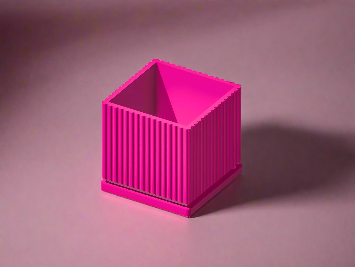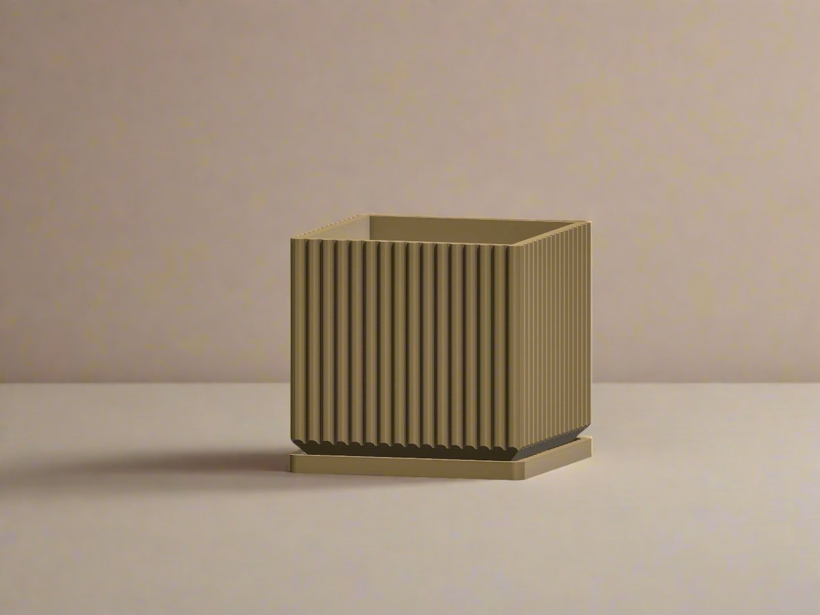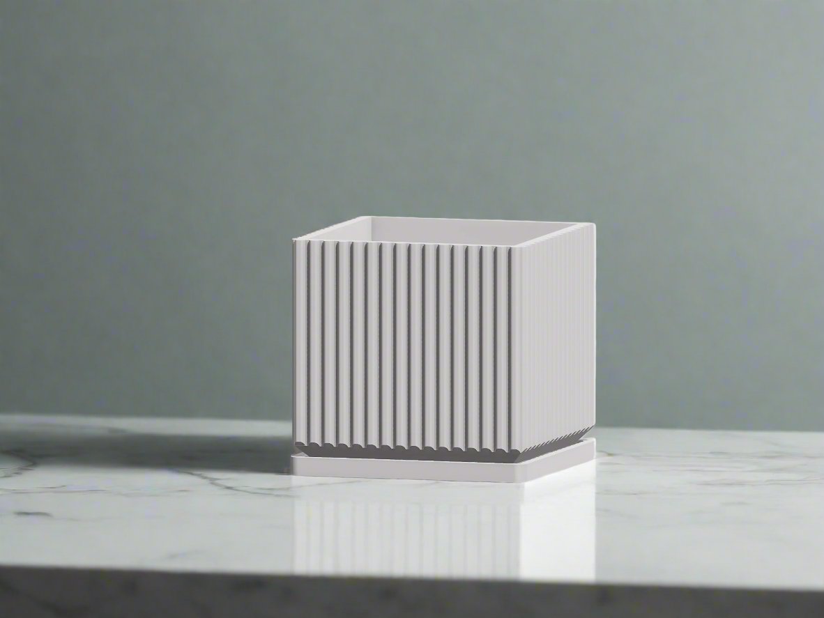 Elevate your plant decor with the Desert Vista, a beautifully designed square mid-century modern planter pot that perfectly blends style and functionality. Expertly 3D-printed with precision, this planter features pleated sides that add a touch of elegance and sophistication to any indoor or outdoor space.