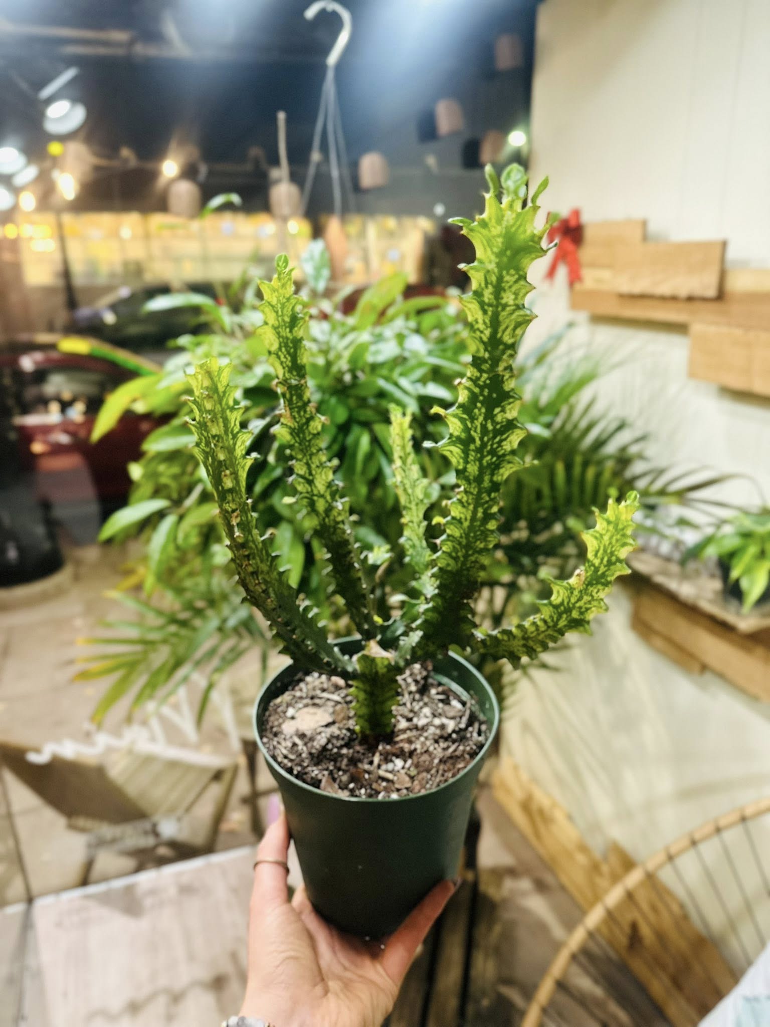 The milky sap produced by Euphorbia trigona has been used traditionally in parts of Africa as a natural protective barrier—though it’s highly irritating to skin, so handle with care! Its upright, branching growth can reach impressive heights over time, giving it a dramatic tree-like presence indoors. 🌿✨