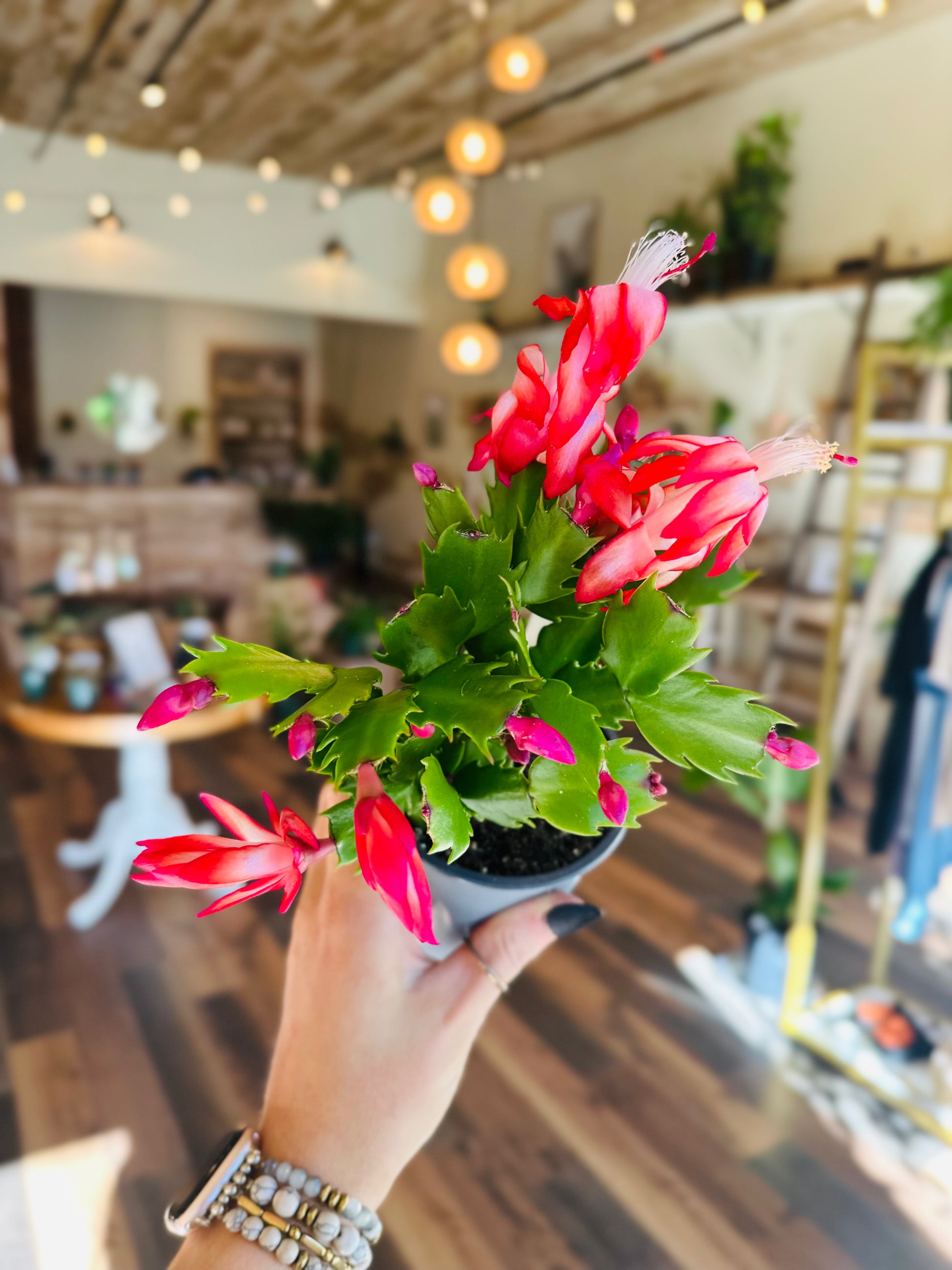 Though often called cacti, Holiday Cactus species come from rainforest regions of Brazil—not the desert. They grow on trees and rocks, soaking up diffuse light and humidity. Their bloom cycles are triggered by short days and cool nights, which is why they flower reliably around the holidays every year. 🌺✨