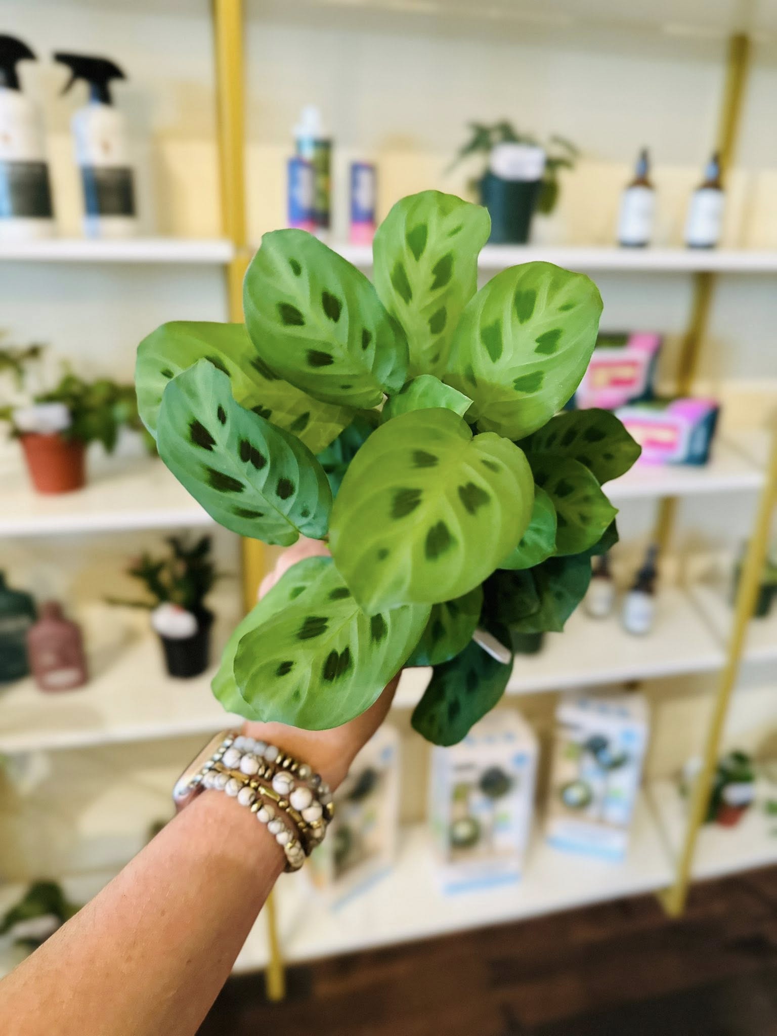 Maranta Rabbit Tracks is a charming prayer plant known for its soft green leaves patterned with darker “tracks” that look like tiny paw prints. Its foliage is smooth, delicate, and full of personality—plus, like all marantas, the leaves move up and down throughout the day, giving it a gentle, living rhythm. It stays compact and full, making it perfect for shelves, desktops, and low-light rooms.