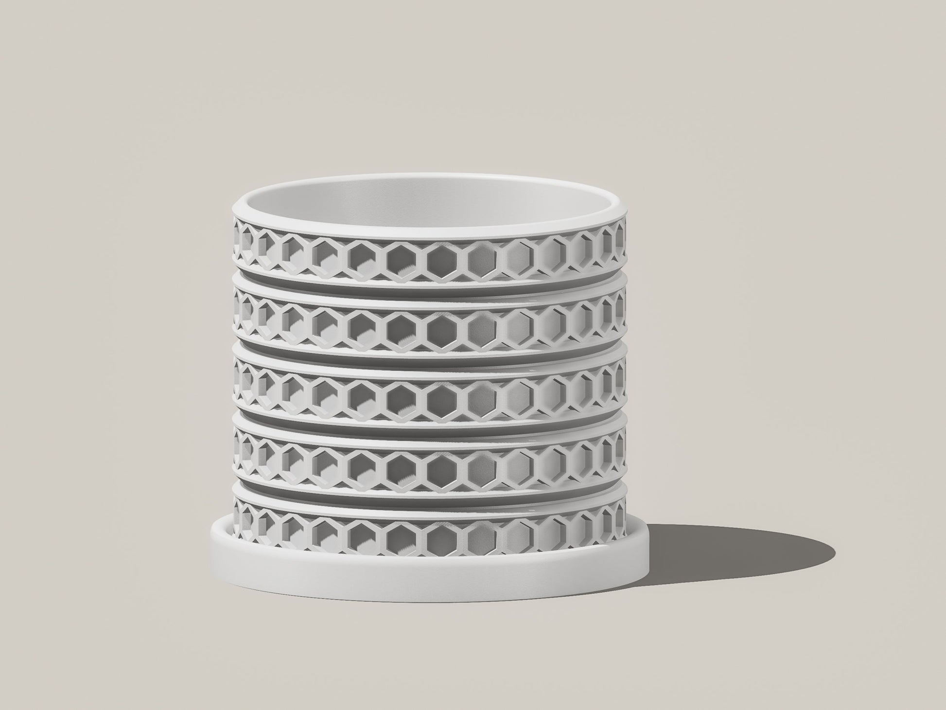3D printed planters are a great addition for your plant. The material is porous allowing for great breathability and aeration. These are also very lightweight, making a great option for wall shelves or small tables.