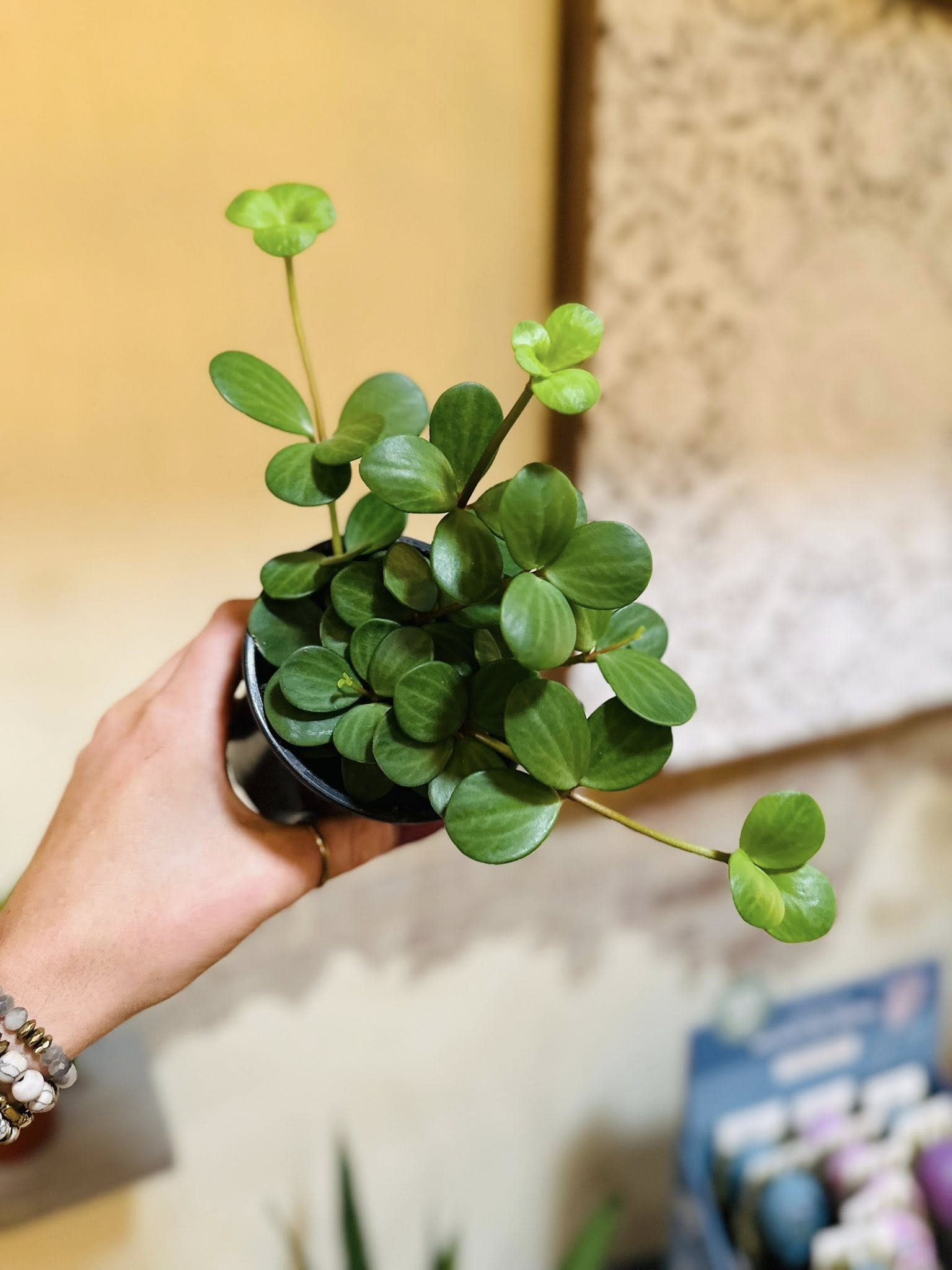 This adorable trailing plant features thick, round leaves that grow in cascading strands—perfect for shelves, hanging pots, or terrarium-style displays. A hybrid of two peperomia species, ‘Hope’ combines the best of both worlds: compact, lush, and delightfully low maintenance.