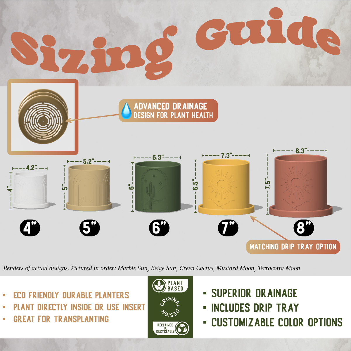 Our planters are 3D printed with PLA - a type of thermoplastic polymer derived from Upcycled materials like Corn, Beets, and Wheat Grass. PLA is 100% biodegradable, recyclable and compostable!