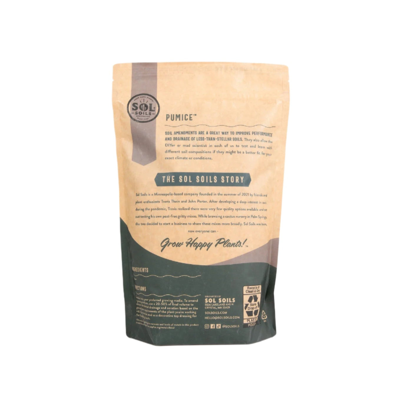 Pumice (filtered 3/8" to 1/4" in size) is relatively lightweight volcanic rock used as an amendment in all types of soil. Its porous composition allows it to retain moisture and nutrients during watering, and release them slowly over time as the root system requires. Think of these components as little batteries for your plants!