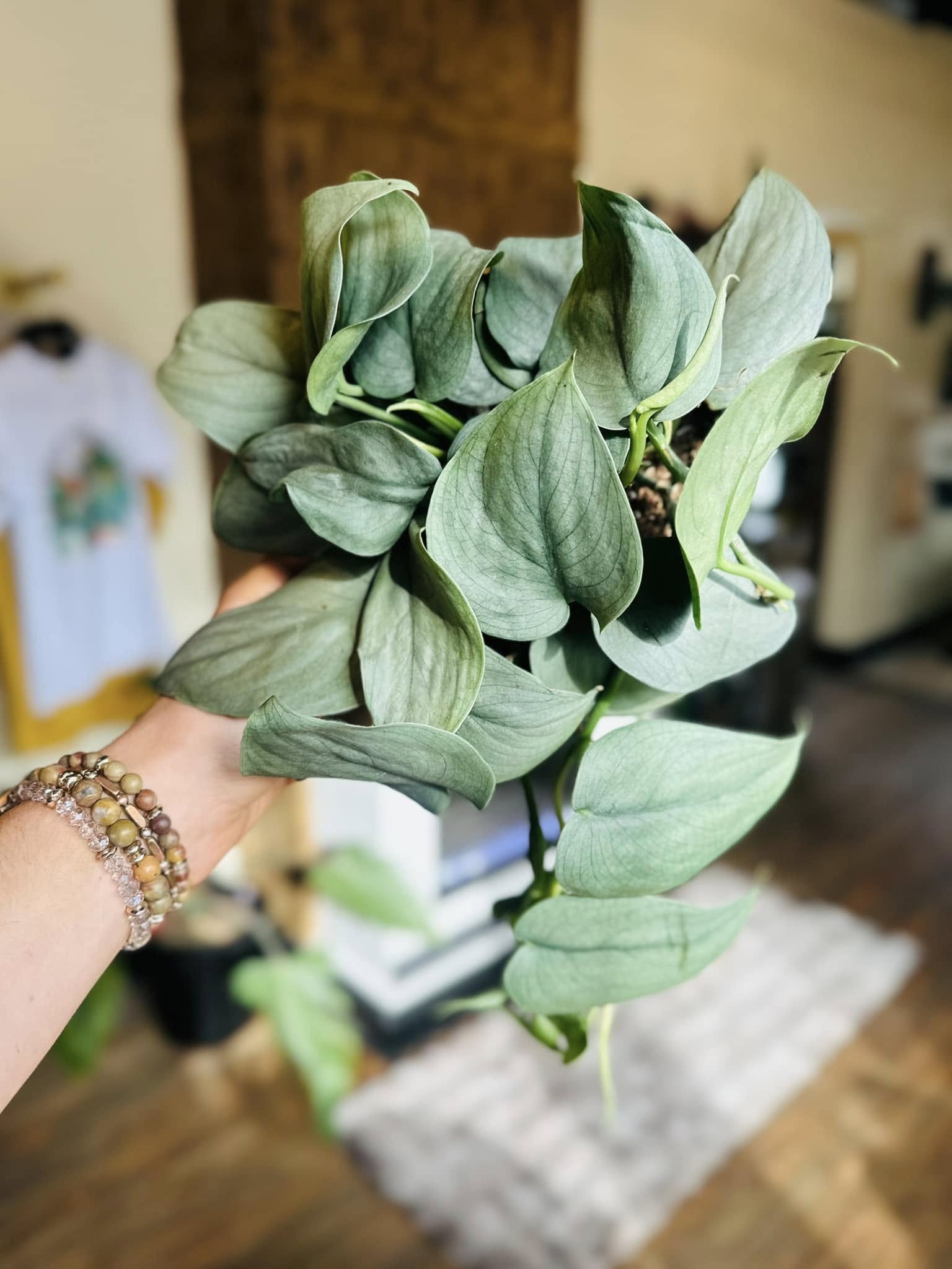 Fun Fact: Scindapsus plants are often mistaken for pothos, but this variety’s ghostly, platinum coloring sets it apart in even the most curated collections.