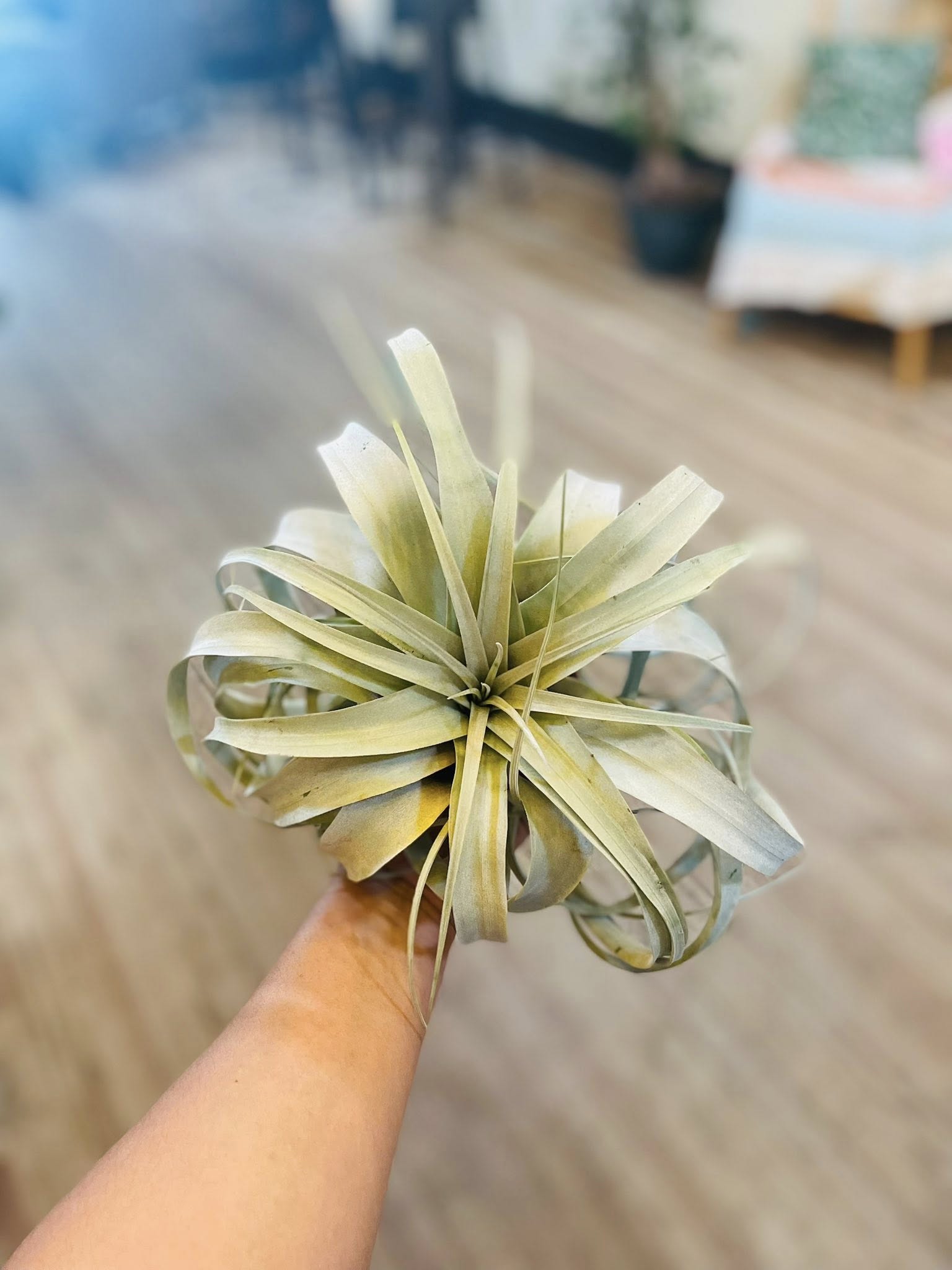 With its silvery curls and sculptural shape, the Xerographica is the crown jewel of the air plant world. Native to Central America, it grows without soil—absorbing moisture and nutrients through its leaves. This slow-growing beauty looks stunning solo in a dish, hanging in an airy display, or perched on a piece of driftwood.